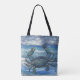 Coastal blue crab against a sea of fluid blues on a full image on both sides tote bag. Image painted by Stephanie K