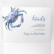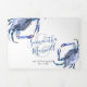 New seaside theme trifold wedding invitations and rsvp card all in one in a coastal design. The outside middle flap features your couples photo. Details are set in a handwritten script typography in ocean blue with a traditional serif face font. A replica of my original watercolor crab in shades of blue adorns the inside and front of your all in one invitation. Customise each flap with your wedding details, photo, rsvp and return address. A coastal chic yet elegant choice for casual seaside New England beach, nautical or summer engagement parties. To see more coastal / beach reception wedding ideas and my complete stationery line visit www.zazzle.com/dotellabelle.