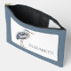This beautiful personalised cosmetic accessory pouch features a coastal blue heron bird in watercolor shades of blue and grey on a white background with matching blue border. Personalise with your choice of name or special text. Great for gift bags and party favours.