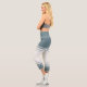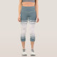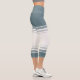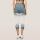 Coastal Blue Ivory Floral Line Art Athletic Stripe Capri Leggings