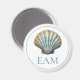 This beautiful monogrammed round magnet features a coastal scallop seashell in soft watercolor shades of blues and tans. Personalise the monogram with your choice of initials. Fun for personalised gift bags and party favours.