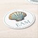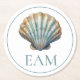 Coastal Blue Scallop Seashell Monogram Round Paper Coaster