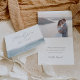 This folded thank you card from the Low Tide collection by Navy Road Creative features a misty blue watercolor ocean design and elegant script “thank you” on the front. Inside, there's space for a personalised message and a photo of the couple—perfect for expressing gratitude after a beach or destination wedding.