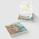 Bring the serene beauty of Italy's Cinque Terre to your home with this exquisite travertine stone coaster, adorned with a vibrant watercolor sketch of the famous seaside villages. The natural texture of the travertine stone perfectly complements the colourful depiction of the rugged cliffs, charming homes, and sparkling Mediterranean waters. This coaster not only protects your surfaces but also adds a unique touch of Italian coastal charm to your decor. Ideal for entertaining or as a thoughtful gift, it captures the essence of a Mediterranean escape right in your living space.