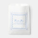 Thank your guests in effortless coastal style with this elegant wedding favour bag. Featuring a delicate blue scalloped border and a striped background, this customisable design adds a refined nautical touch to your celebration. Personalise it with your names and wedding location for a unique finishing touch. Perfect for seaside weddings, summer celebrations, or any classic blue-and-white event.