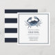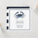 A chic summer party invitation, perfect for birthdays, bbqs or seafood related party! The design features a blue watercolor crab with a blue striped back sourroned by an elegant navy blue frame.