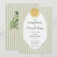 This whimsical coastal wedding invitation features a vintage sun motif, lace border, palm trees, and stylish sage green stripe background. Perfect for a beach or California destination wedding. Created by Simply Farmhouse Press.
