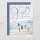 This Coastal, Nautical Christmas Joy Seashell Holiday Photo features a rustic seashell as the "o" in Joy on a background of coastal white wood, with seaside blue text. Easy to add your photo and details for a fun Christmas card!