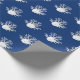 Coastal Christmas Navy Blue Starfish Sand Dollar Wrapping Paper