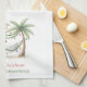 This fun coastal holiday inspired Christmas party kitchen dish towel features palm trees decorated with ornaments and a hammock. Personalize with your choice of special text. Great for personalized holiday party decorations and party favors.