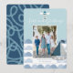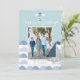 This nautical chic "Seas and Greetings" christmas holiday photo card features a light turquoise blue bacground with a sailboat, lighthouse, and waves. The reverse side features a navy blue background with rope patterns. Personalise it for your needs. You can find matching products at my store.