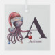 Coastal Christmas Santa Octopus Monogram Name Glass Tree Decoration