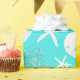 Coastal Christmas Starfish Sand Dollar Aqua Wrapping Paper