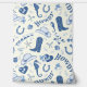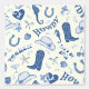 Playful pattern in blue white tones featuring coastal / cowgirl elements (cowgirl boot, hat, horseshoe, horse, stars, bows, cherries, seahorse, starfish, shell, howdy, yeehaw typography) as coastal / beach party / event decor for bachelorette, bridal shower, birthday party, graduation party etc.