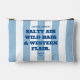 Yeehaw, beach babes! Get ready to pack your party essentials in style with our Coastal Cowgirl Western Flair Blue Cabana Stripe pouch – the ultimate accessory for your bachelorette weekend or girls trip. Featuring denim blue cabana stripes and “Salty Air, Wild Hair & Western Flair.” lettering, this stylish and spacious pouch is both fun and functional for your beachside celebration.