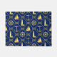 Add a nautical vibe to your home decor with this doormat, perfect for beach houses and captain's residence. Gold nautical elements and gold rope with nautical knots form a classic elegant nautical pattern which stands out against a dark blue background.