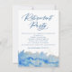 Invite your guests to a retirement celebration with this customisable flat card. This elegant and graceful design is hand painted watercolor in shades of light blue, classic blue and navy blue complemented by hints of gold (simulated foil) . The abstract, clean design is perfect for a man or woman who is ready to celebrate the next chapter in life. Text is in classic blue and can be customised for your celebration.