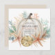 Invite your guests to a holiday feast with this coastal fall theme Thanksgiving dinner invitation featuring a watercolor pumpkin surrounded by starfish and sand dollar seashells, coral, palm and eucalyptus greenery in an earth-toned, autumn colour palette.