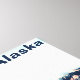 A stylised image of a coastal glacier in southern Alaska as seen from offshore. Small pieces of ice float in the water and the scene is reflected on the water's surface. Text reading, Alaska" also appears. You may easily remove this if you wish. Add your own additional text.