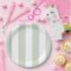 Coastal Green Cabana Stripes Birthday Paper Plate