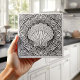 This coastal ceramic tile features a bold clam shell framed by an intricate border of swirling waves, coral branches, bubbles, and stylized marine flourishes. Rendered in charcoal black with crisp ivory white, the design has a classic two-tone block-print look that highlights its detailed linework and coastal charm. The rich pattern and handcrafted feel make it a versatile choice for beach homes, nautical décor themes, accent walls, backsplashes, craft projects, and coordinated coastal collections. Search ID1208 to see additional colors and design motifs in this series. Note: design may contain generative content