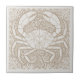 This coastal ceramic tile features a crab surrounded by an intricate arrangement of swirling waves, coral branches, bubbles, seaweed, and stylized marine details. The design is printed in soft sand paired with crisp ivory white, giving it a striking two-tone look inspired by classic block-print and nautical artwork. With its rich pattern and handcrafted feel, this tile works beautifully in beach homes, nautical décor themes, accent walls, backsplashes, and decorative coastal projects. Simply choose your preferred color variation to suit your style. Search ID1208 to see additional colors and design motifs in this series. Note: design may contain generative content