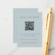 This light blue RSVP card from the Low Tide collection by Navy Road Creative combines airy coastal tones with modern convenience. Featuring minimalist text and a QR code for digital replies, it's perfect for beach weddings, destination events, or contemporary coastal suites.