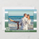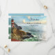 Coastal lighthouse Save the Date card. This is a fantasy scene, not an existing location image (as far as I know :-)). Dreaming of a wonderful future together. On the back is your own photo on a nautical striped design. A QR code template offers the option to easily link to your own website.