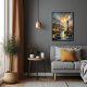 Coastal Lighthouse & Seaside Village Sunset Art Poster