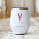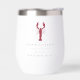 These coastal chic wine tumblers make great bridal party gifts or wedding favours for your New England or Maine wedding. Clean minimal design features your names, wedding date, and location in classic black serif lettering. A lobster illustration in red completes the design.