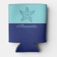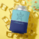 Coastal Modern Navy Blue Teal Monogram Starfish Can Cooler