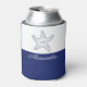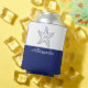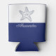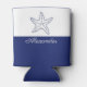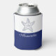 Coastal Modern Navy Blue White Monogram Starfish Can Cooler