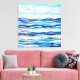 Coastal Ocean Painting Canvas Print with blue colours of the beautiful calm deep blue ocean. This modern coastal art print is a piece of stylish beach decor, tropical wall art, coastal decor, for any coastal home, beach themed houses, and seaside cottages.