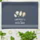 This coastal chic kitchen towel features soft cream and aqua watercolor oyster and pearl illustrations. Perfect for beach houses, coastal abodes, or anyone who loves oysters and fresh shellfish. Personalise with a family name and year established along the bottom, along with "Oyster Shack" or your choice of personalisation.