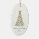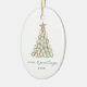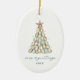 Celebrate coastal Christmas memories with this personalized ceramic ornament from Redwood & Vine Design Co. The front features a hand-painted Christmas tree made of oyster shells in soft aqua and sand hues, topped with a rustic driftwood star for a uniquely nautical holiday look. "Seas & Greetings" appears beneath, along with the year. Turn it over to add a favorite photo on the back. A charming keepsake for beach lovers, oyster enthusiasts, and coastal homes, this ornament brings seaside elegance to your tree and becomes a treasured part of your holiday traditions year after year.
