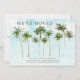 Stylish moving announcement featuring a row of tropical palm trees set on a white background with a coordinating back for an extra special touch.