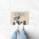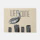 Greet your guests with this lovely door mat featuring a black and white sketchy pelican illustration and custom coloured background!
