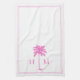 Coastal Pink and White Palmetto Palm Monogram Tea Towel
