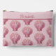 This cute personalised cosmetic bag features coastal pink scallop seashells on a background of soft pink.  Personalise with your choice of name or special text.