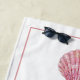 This cute personalised beach towel features coastal pink scallop seashells on a background of solid white. Personalise with your choice of name or special text.