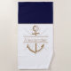 Coastal Navy Blue Anchor Nautical Monogram Name Beach Towels