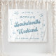 Welcome your bride tribe to a weekend of fun with this customisable dusty blue bachelorette party tapestry. Featuring a stylish design with a personalised name, location, and date, this eye-catching wall hanging will set the perfect celebratory tone for your bachelorette weekend. With its chic colours and playful details like martini glasses and seashells, this tapestry adds a touch of glamour and excitement to any party space. Create a lasting memory with this unique and personalised keepsake.