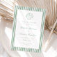 Set the tone for your wedding with this sage green wedding save the date, featuring a hand-drawn seashell illustration at the top and a classic striped border. The couple’s names are displayed in elegant calligraphy script, with the wedding date and location arranged below in classic serif lettering. This design is a great choice for beach weddings, seaside ceremonies, and destination weddings, offering a refined take on nautical-inspired wedding stationery. The back features space for a wedding website, photos, or additional wedding details.