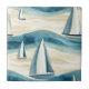 A serene nautical pattern ceramic tile featuring sailboats drifting across layered blue, teal, and sandy waves. This calming coastal design brings a breezy seaside feel, ideal for ocean lovers, beach-house décor fans, sailors, and anyone who enjoys relaxed maritime style. Perfect for summer gifts, coastal celebrations, and nautical-themed events.