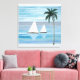 Modern Coastal Beach Canvas Print with beautiful blue hues of a calm blue ocean with 2 sailing boats. This modern coastal art print is a piece of stylish beach decor, tropical wall art, coastal decor, for any coastal home, beach themed houses, and seaside cottages. Copyright © Totally Coast All Rights Reserved 2023