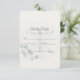The front features a gently faded sand dollar watermark, graceful script for “Kindly Reply,” and refined form lines for guest responses. Subtle watercolor eucalyptus adds a fresh botanical touch that complements beach, shoreline, and destination weddings beautifully.