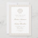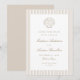 Announce your wedding date with this coastal stripe seashell wedding save the date, featuring sandy beige-colored stripes paired with a hand-drawn seashell illustration. The couple’s names are displayed in elegant calligraphy script, with the wedding date and location shown below in classic serif lettering. This design is ideal for beach weddings, destination weddings, and seaside ceremonies, and works beautifully with neutral wedding color palettes. The back provides plenty of space to add your wedding website, engagement photo, or additional wedding details.