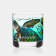 Tropical Coastal Sea Turtle Teal Blue Green Whiskey Glass. Perfect Gift for any ocean lover.