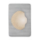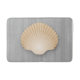 Get the beach side coastal cottage look with this lovely grey wooden planks and scalloped tan seashell foam bathmat!