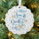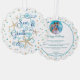 Send unique Christmas holiday greetings with a costal, beach or tropical photo ornament card with a fun twist on the traditional Season's Greetings with SEAS & GREETINGS in an elegant calligraphy script typography accented by starfish and turquoise and golden, sandy brown dots on the front and your picture, personal greeting (shown with HAPPY HOLIDAYS) and your message or year summary and name and year on the back in your choice of font styles and colours. ASSISTANCE: For help with design modification or personalisation, colour change, resizing, transferring the design to another product or if you would like coordinating items, contact the designer BEFORE ORDERING via the Zazzle Chat MESSAGE tab or email makeitaboutyoustore@gmail.com.